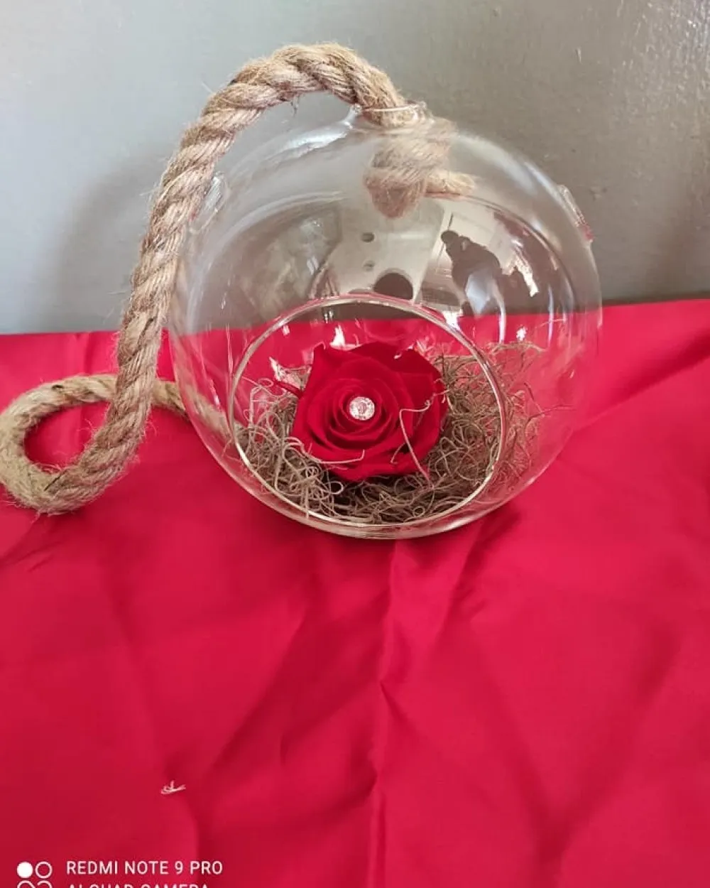 Γυάλα στρογγυλή μικρή με αθάνατο κόκκινο τριαντάφυλλο
