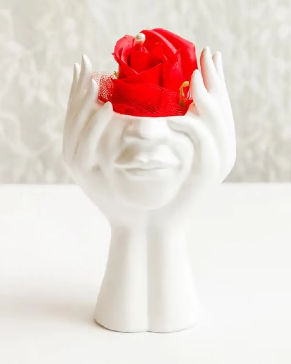 Πρόσωπο μεγάλο σε λευκό χρώμα με τριαντάφυλλο κόκκινο από σαπούνι