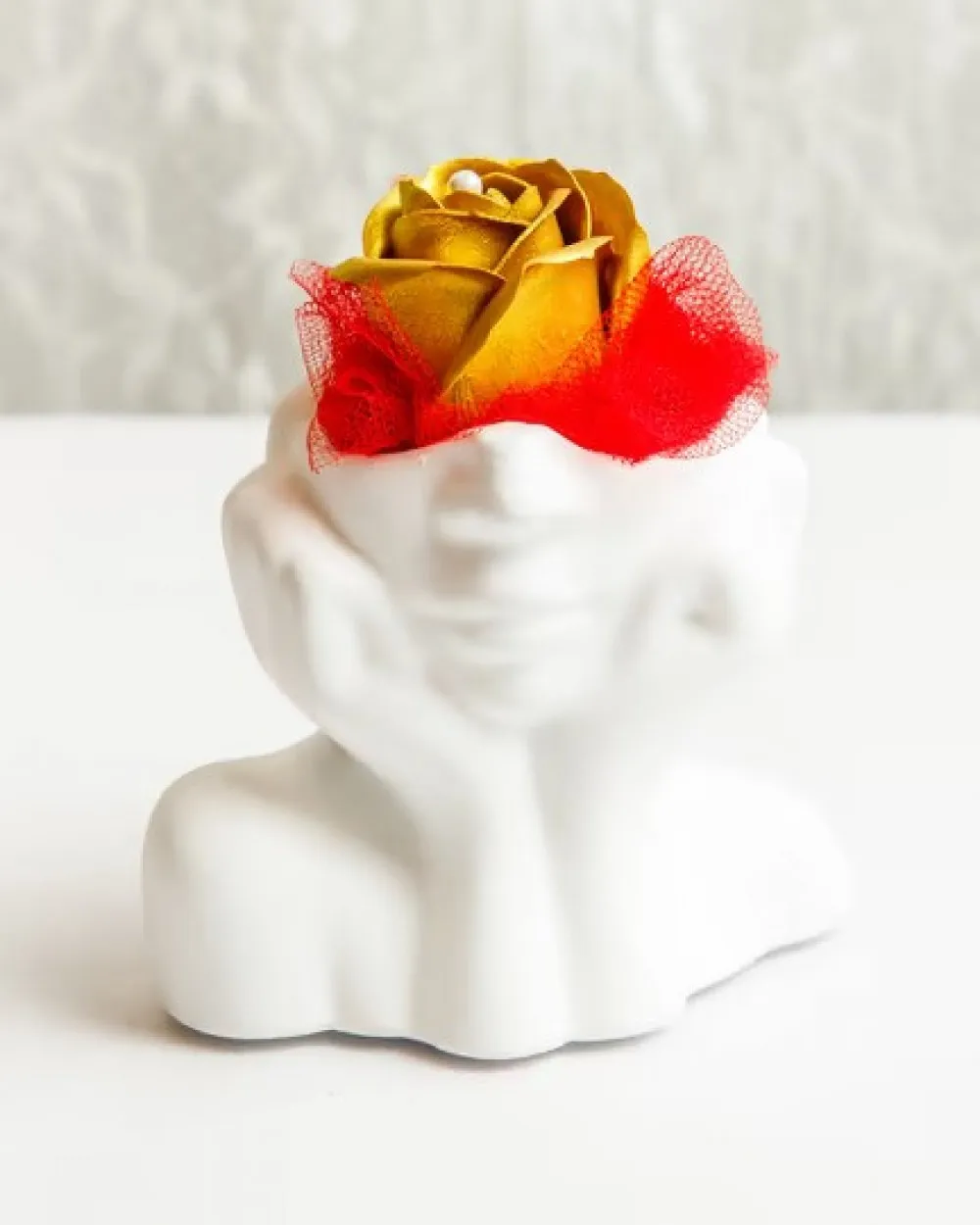 Πρόσωπο μικρό σε λευκό χρώμα με τριαντάφυλλο χρυσό από σαπούνι