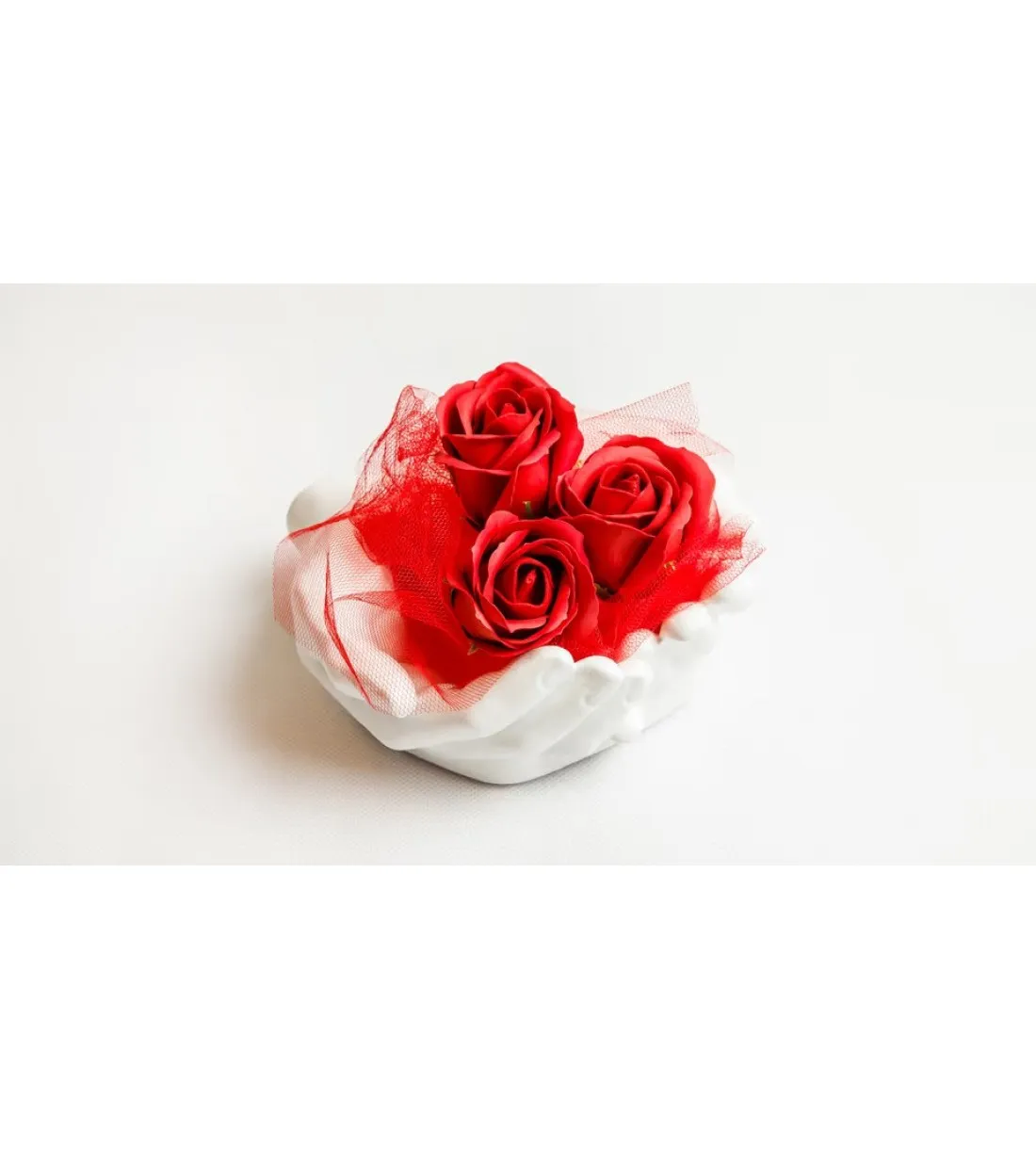 Χούφτα σε λευκό χρώμα με τριαντάφυλλα από σαπούνι