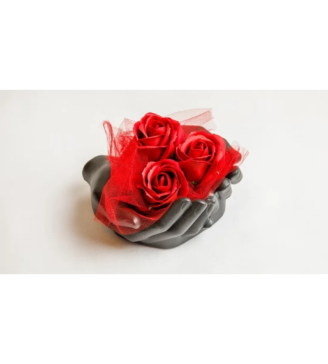 Χούφτα σε μαύρο χρώμα με τριαντάφυλλα από σαπούνι
