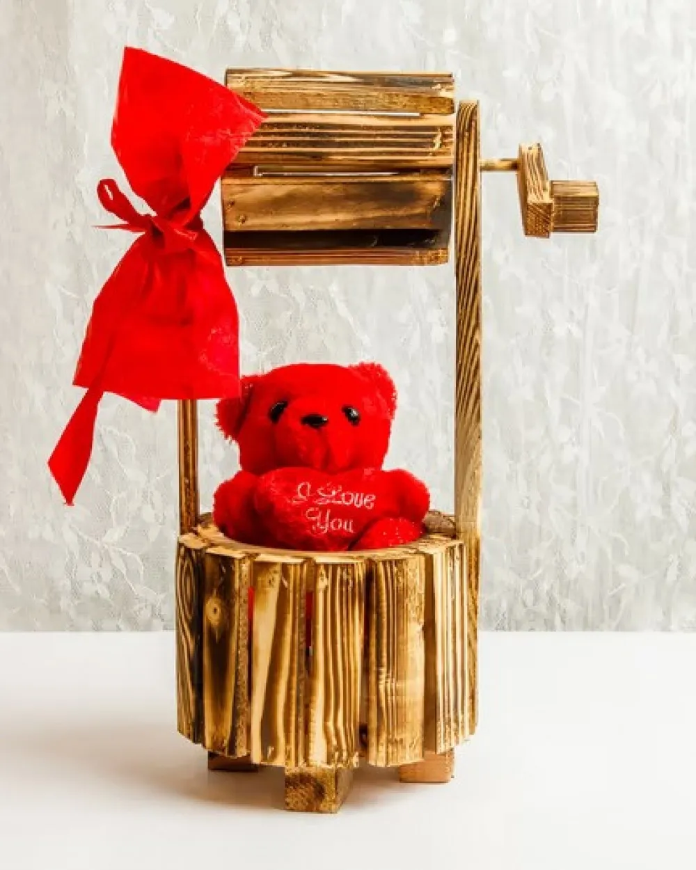 Ξύλινο πηγαδάκι στρογγυλό με αρκουδάκι κόκκινο